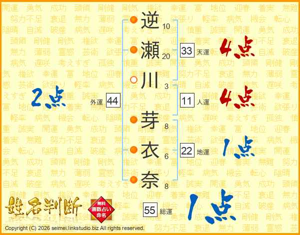 逆瀬川芽衣奈さんの総運は55画の1点!