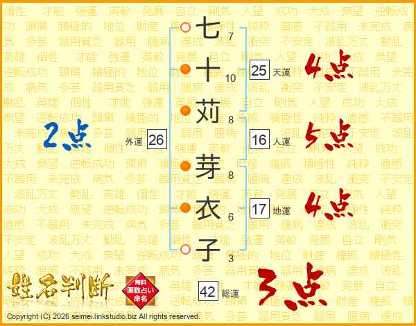 七十苅芽衣子さんの外運は26画の2点!