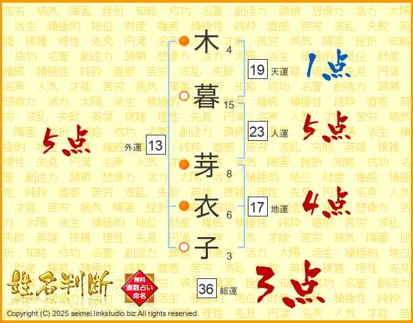 木暮芽衣子さんの外運は13画の5点!