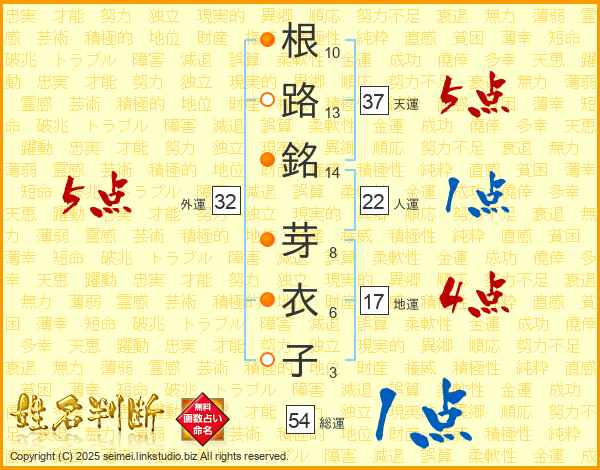根路銘芽衣子さんの総運は54画の1点!