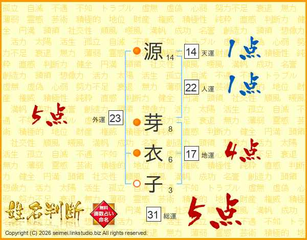 源芽衣子さんの総運は31画の5点!