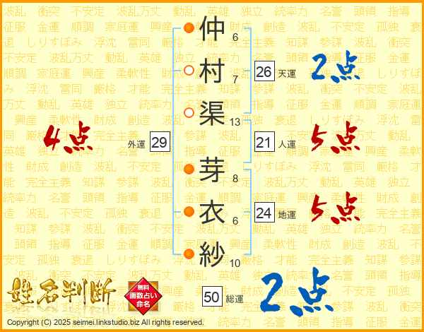 仲村渠芽衣紗さんの総運は50画の2点!