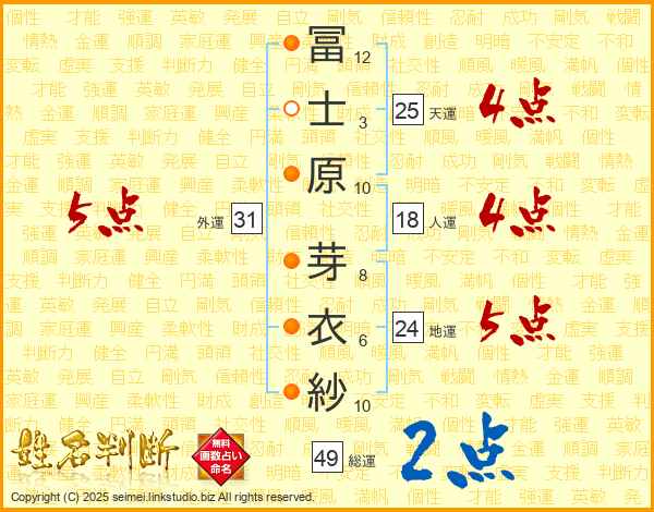 冨士原芽衣紗さんの外運は31画の5点!