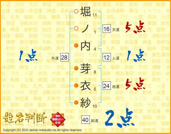 堀ノ内芽衣紗さんの総運は40画の2点!