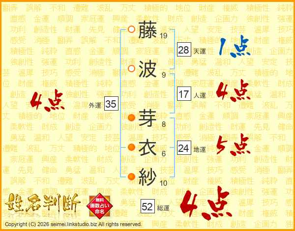 藤波芽衣紗さんの外運は35画の4点!