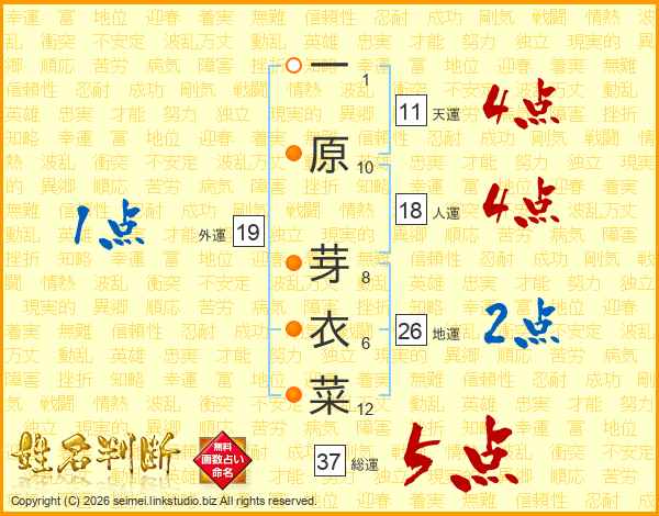 一原芽衣菜さんの総運は37画の5点!