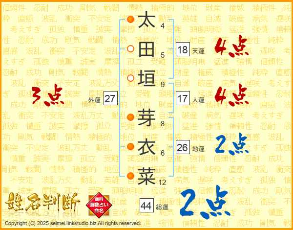 太田垣芽衣菜さんの地運は26画の2点!