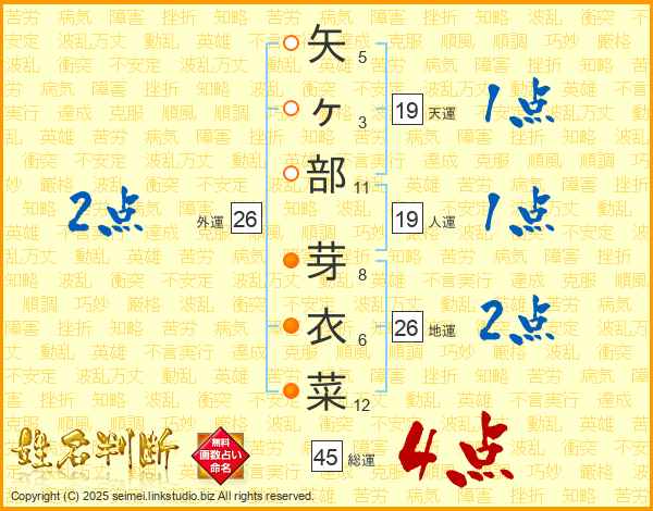 矢ヶ部芽衣菜さんの総運は45画の4点!