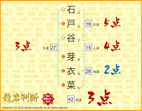 石戸谷芽衣菜さんの天運は16画の5点!