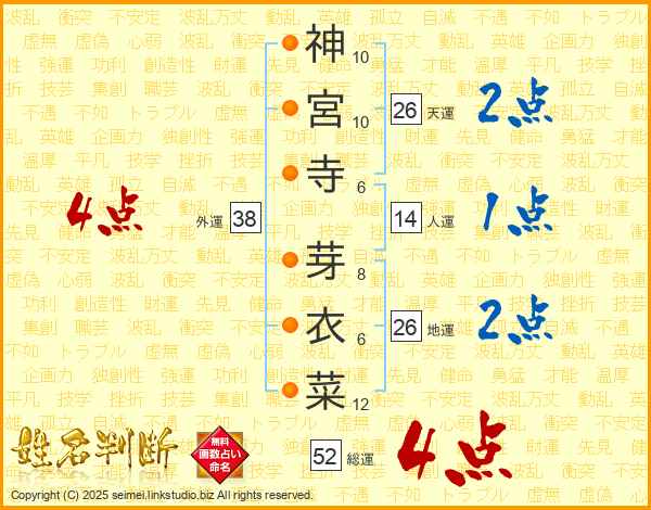 神宮寺芽衣菜さんの外運は38画の4点!