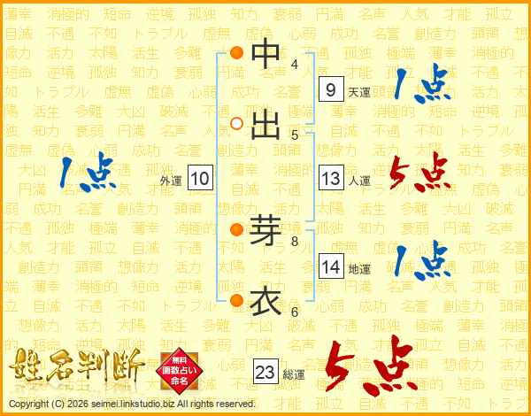 中出芽衣さんの総運は23画の5点!