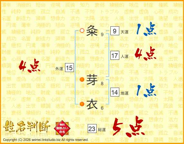 粂芽衣さんの人運は17画の4点!