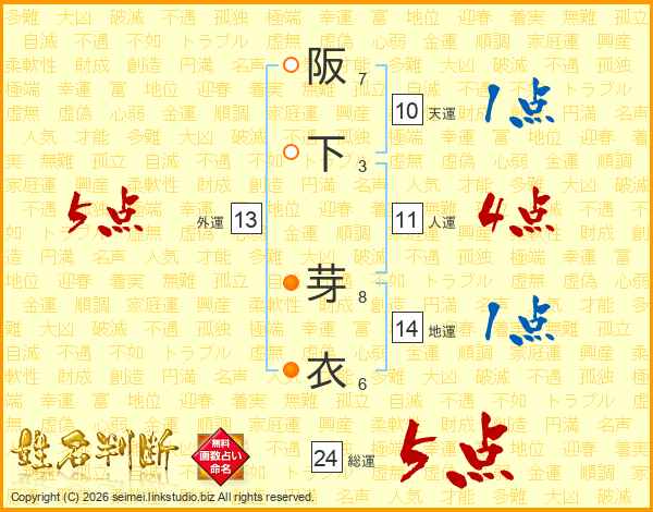 阪下芽衣さんの外運は13画の5点!