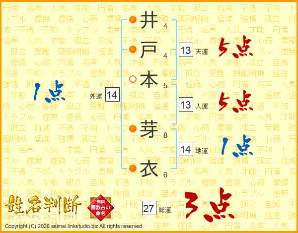 井戸本芽衣さんの人運は13画の5点!