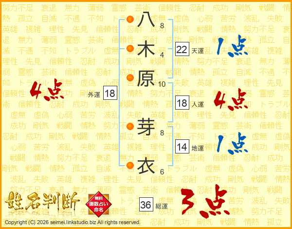 八木原芽衣さんの人運は18画の4点!