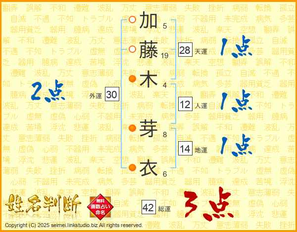 加藤木芽衣さんの総運は42画の3点!
