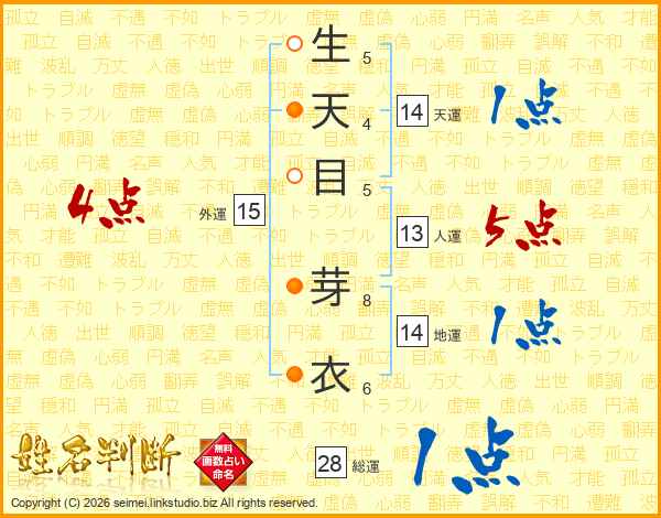 生天目芽衣さんの天運は14画の1点!