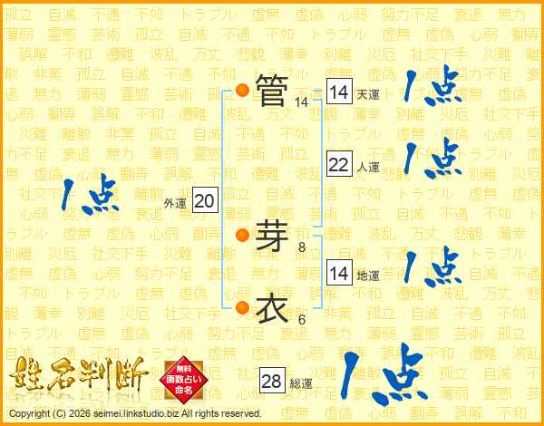 管芽衣さんの総運は28画の1点!