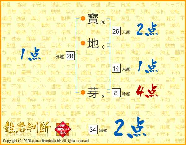 寳地芽さんの天運は26画の2点!