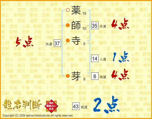 薬師寺芽さんの外運は37画の5点!