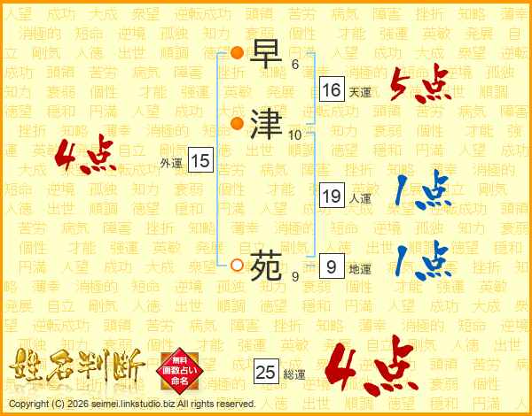 早津苑さんの天運は16画の5点!