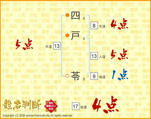 四戸苓さんの総運は17画の4点!
