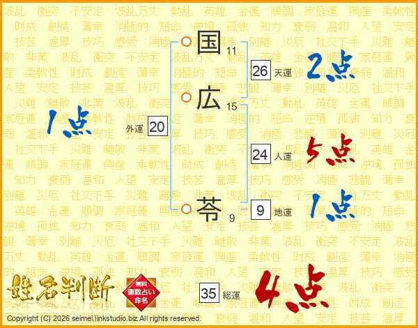 国広苓さんの総運は35画の4点!