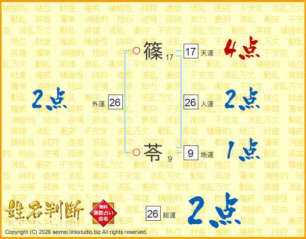 篠苓さんの総運は26画の2点!