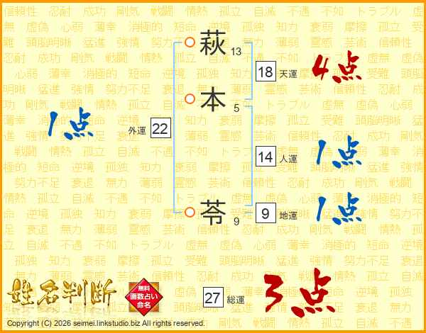 萩(13画)本(5画) 苓(9画)
