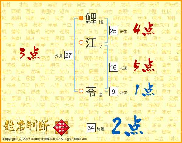 鯉江苓さんの総運は34画の2点!