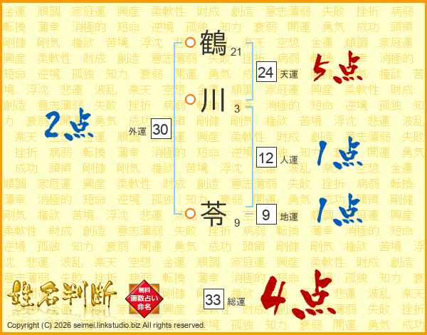 鶴川苓さんの総運は33画の4点!