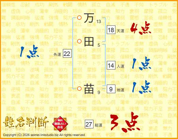 万田苗さんの天運は18画の4点!