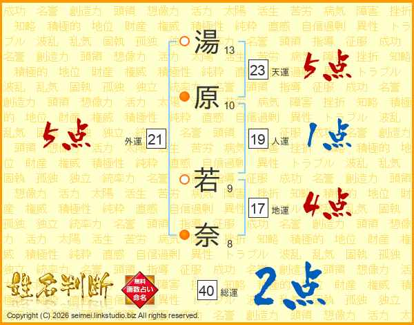 湯原若奈さんの天運は23画の5点!