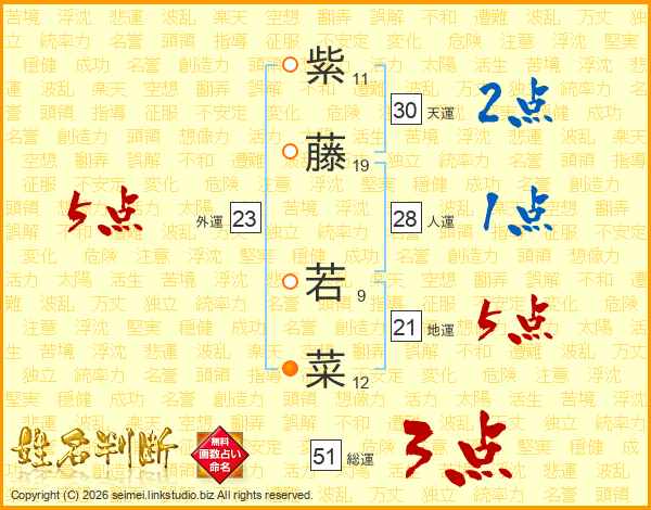 紫藤若菜さんの総運は51画の3点!