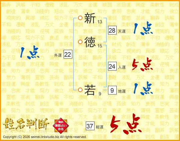 新徳若さんの総運は37画の5点!