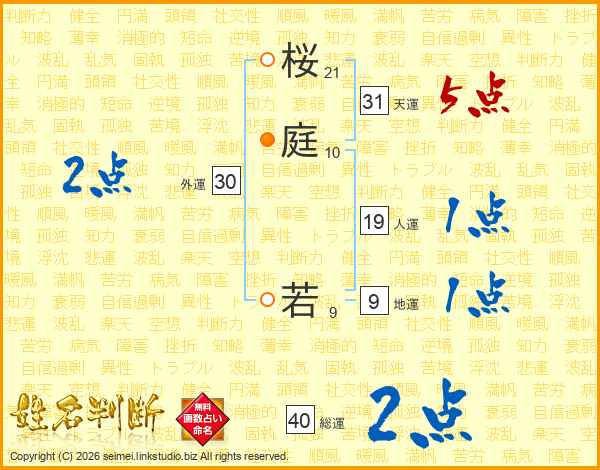 桜(21画)庭(10画) 若(9画)