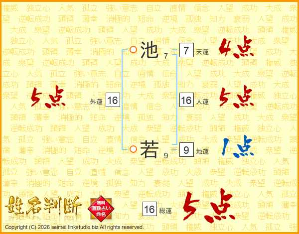 池若さんの総運は16画の5点!