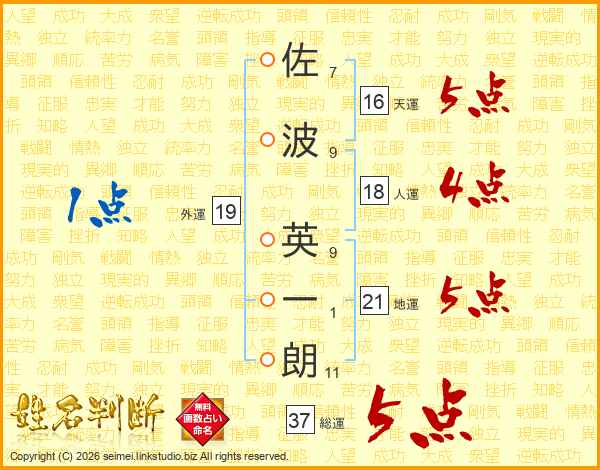 佐波英一朗さんの総運は37画の5点!