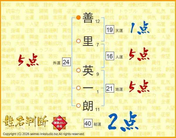 善里英一朗さんの総運は40画の2点!