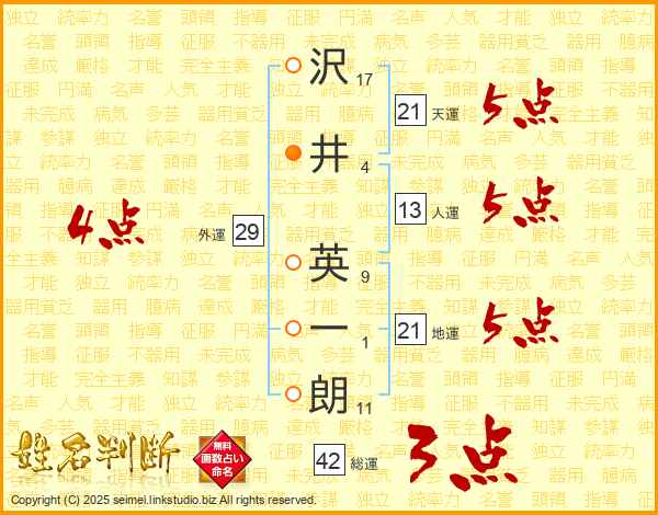 沢井英一朗さんの天運は21画の5点!