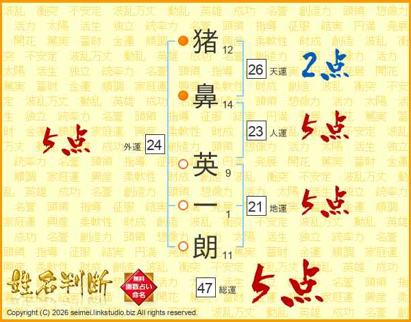 猪鼻英一朗さんの総運は47画の5点!