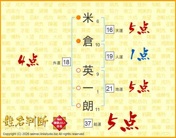 米倉英一朗さんの総運は37画の5点!