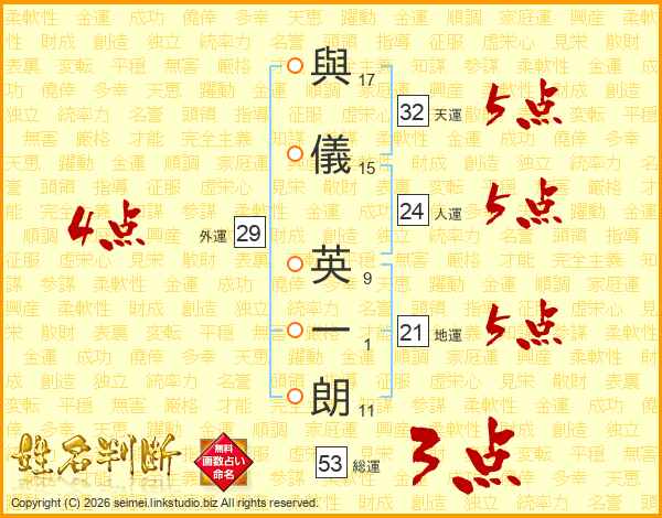 與儀英一朗さんの総運は53画の3点!