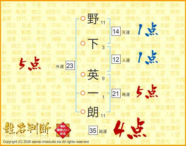 野下英一朗さんの総運は35画の4点!