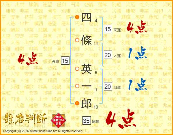 四條英一郎さんの総運は35画の4点!