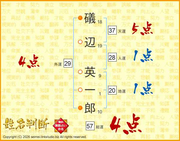 礒辺英一郎さんの天運は37画の5点!