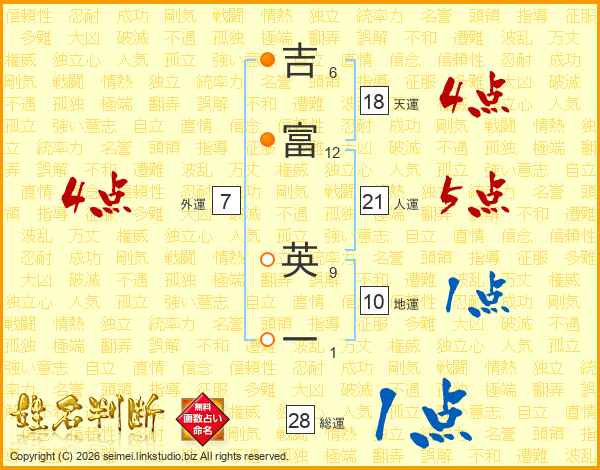 吉富英一さんの総運は28画の1点!