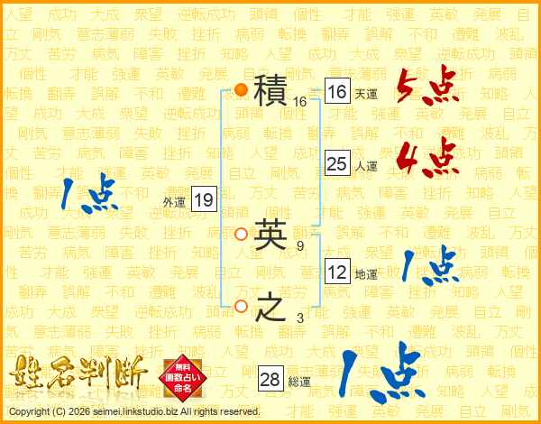 積英之さんの総運は28画の1点!