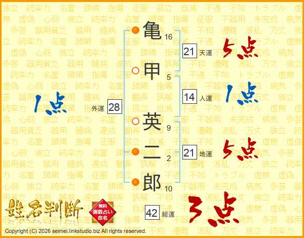 亀甲英二郎さんの天運は21画の5点!
