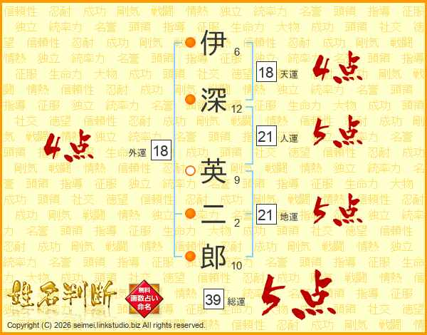 伊深英二郎さんの総運は39画の5点!
